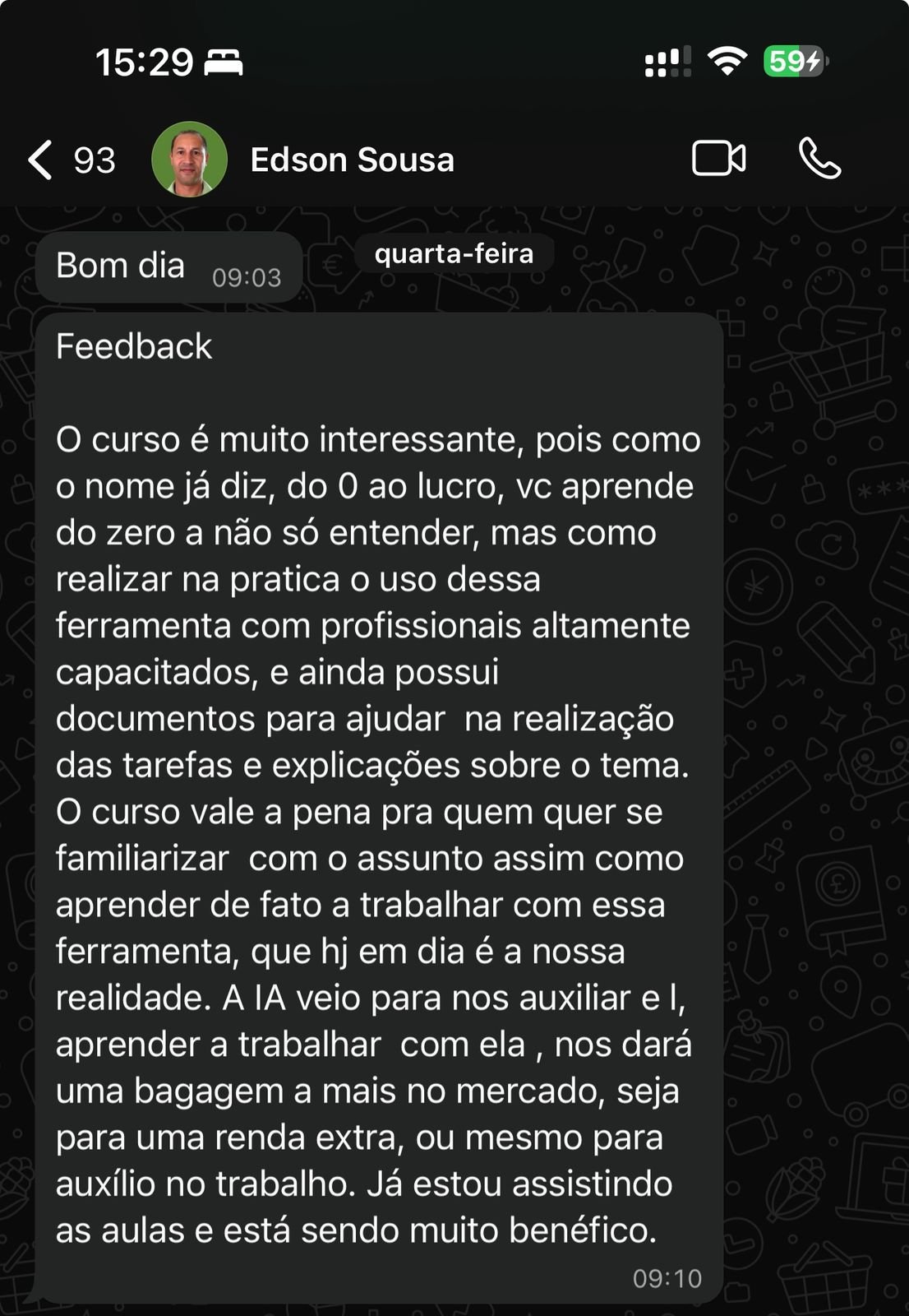 Em apenas 3 dias de 1h30 cada, você vai conseguir sair do absoluto ZERO ou do nível iniciante e começar a ter seus primeiros resultados com IA, automações e integrações.