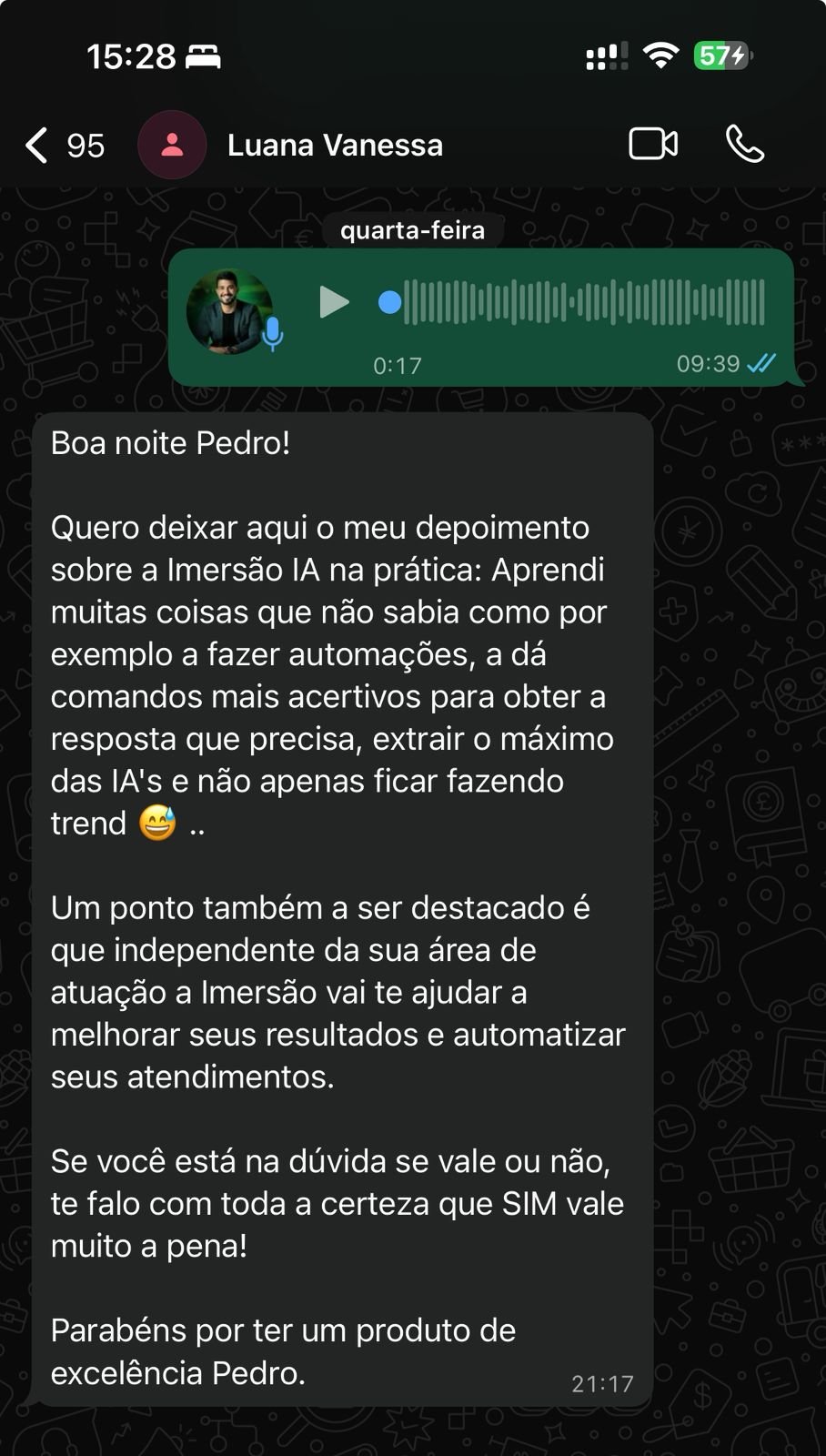 A única imersão que ensina na prática como implementar IA + Automações no seu negócio (sem enrolação, sem "segredos" e sem precisar de mentoria cara).